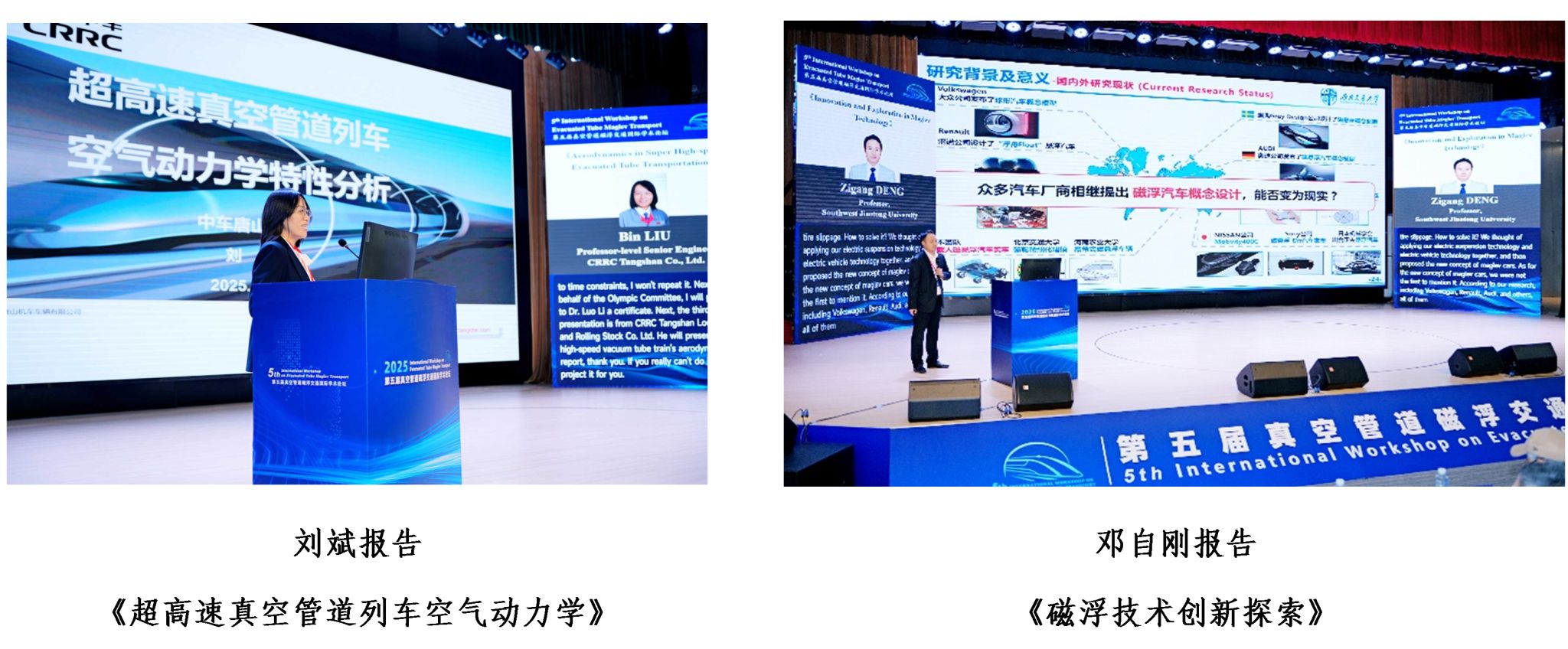 、中铁二十三局、中铁工程设计咨询集团有限公司、中铁第四勘察设计院集团有限公司、中车时代电气股份有限公司、中车青岛四方机车车辆股份有限公司、中车长春轨道客车股份有限公司、中车唐山机车车辆有限公司、中国钢研科技集团有限公司、Max Bögl、HARDT Hyperloop、Technical University of Munich、Chalmers University of Technology、Zeleros Hyperloop等单位的18位专家就各自研究领域及相关技术成果进行了专题报告。